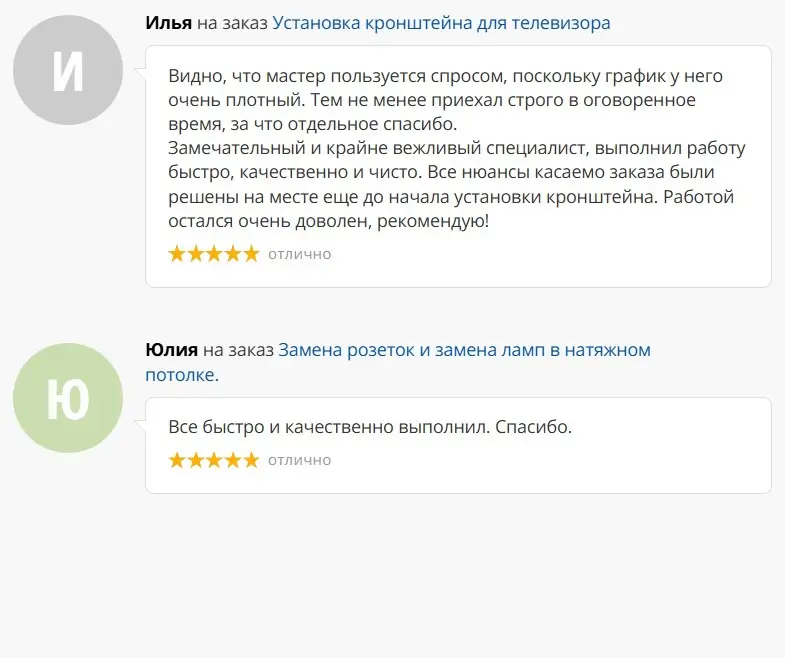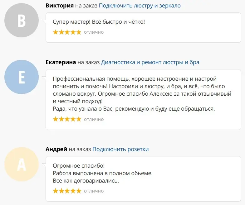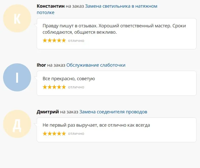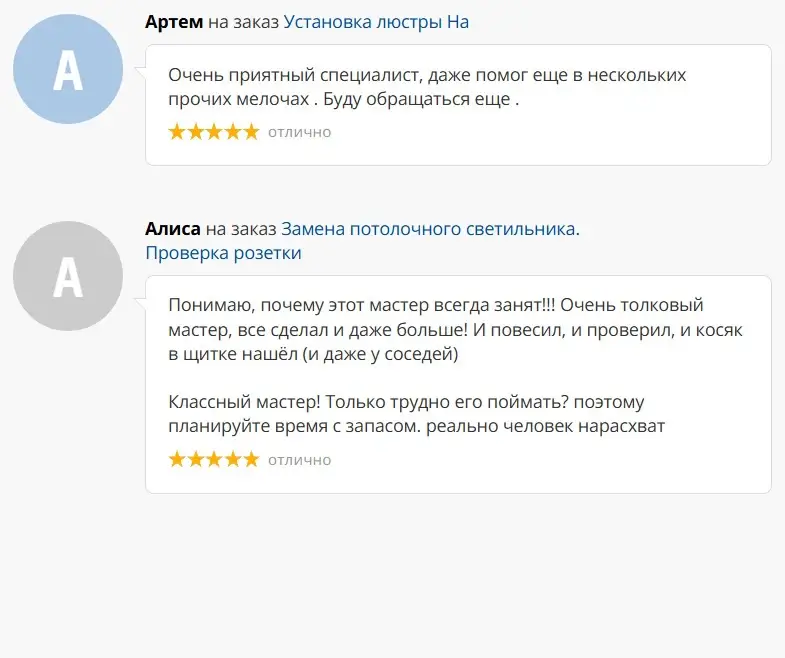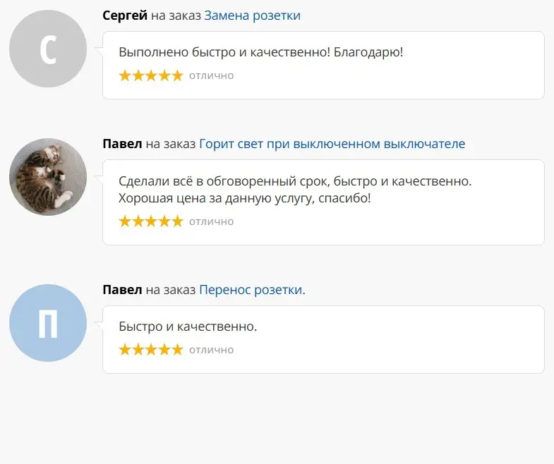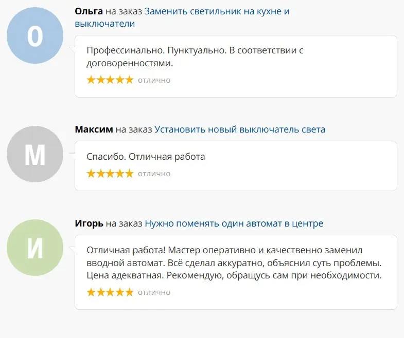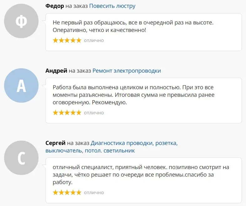 Основной вид нашей деятельности — выполнение электроремонтных, электромонтажных, пусконаладочных работ по заявкам физических и юридических лиц, оперативное устранение аварийных ситуаций, замена и модернизация элементов защиты, автоматики, электроприборов, а также мелкий бытовой ремонт ( услуга «мастер на час»).